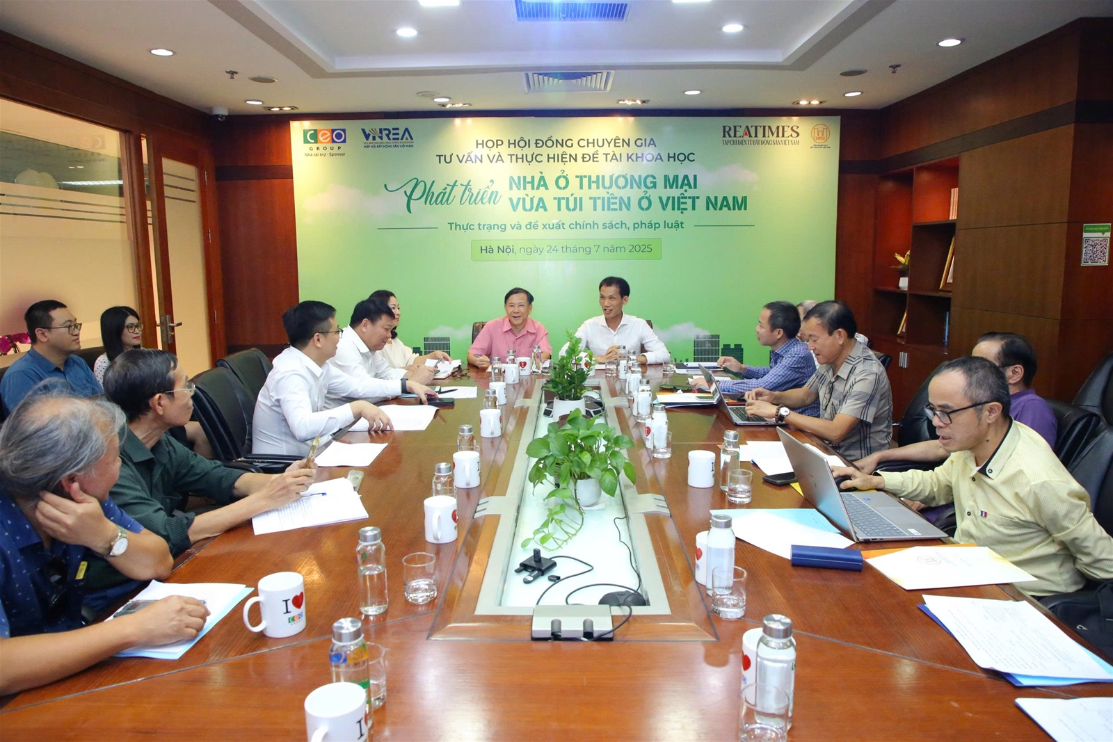 Cùng với đó, năm 2025 đánh dấu bước tiến mới trong công tác nghiên cứu khoa học của VNREA. Trước các vấn đề cấp thiết của thị trường, Hiệp hội đã chủ trì nhiều đề tài nghiên cứu chuyên sâu, cung cấp luận cứ cho tư vấn chính sách vĩ mô. Ngày 24/7/2025, Viện Nghiên cứu Bất động sản Việt Nam phối hợp Tạp chí Reatimes và Tập đoàn CEO tổ chức họp Hội đồng triển khai Đề tài "Phát triển nhà ở thương mại vừa túi tiền ở Việt Nam - Thực trạng và đề xuất chính sách, pháp luật", do TS. LS. Đoàn Văn Bình chủ nhiệm, nhằm xây dựng giải pháp thúc đẩy phân khúc nhà ở vừa túi tiền đến 2030, tầm nhìn 2045.
